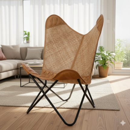 Original price was: ₹7,999.00.₹5,999.00Current price is: ₹5,999.00.Handcrafted Goat Leather & Cane Butterfly chair