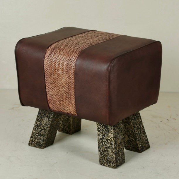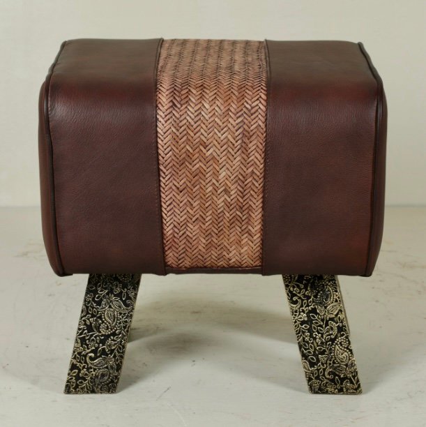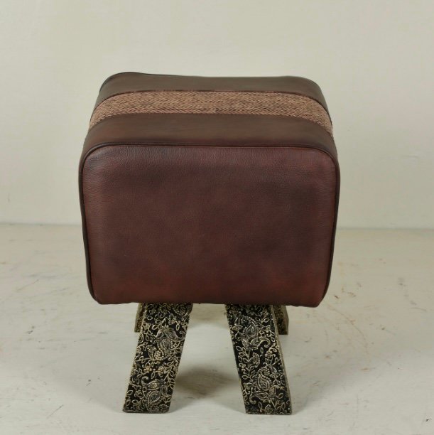 Folding Leather Stool with Iron Legs